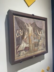 As we toured Pompeii and experienced the exhibit dedicated to women, I was somewhat surprised by the variety in roles women could have in ancient Roman life. I expected that women would have generally been relegated to the private sphere, and while women certainly dominated that space, I thought it was interesting how many of them also fulfilled roles in the public sphere. For example, on our tour we learned about Eumachia, a wealthy woman in Pompeii who ran a very successful textile business. The exhibit explained that Matrons and upper class women could own a variety of different businesses, while lower class women with the skill for it might run a food service. I thought it was interesting that, while women had more options than I had expected, the ways in which they engaged in public life were limited based on both their gender (women did not serve in political or military capacities, rarely worked in occupations such as moneylending) and their socioeconomic standing.